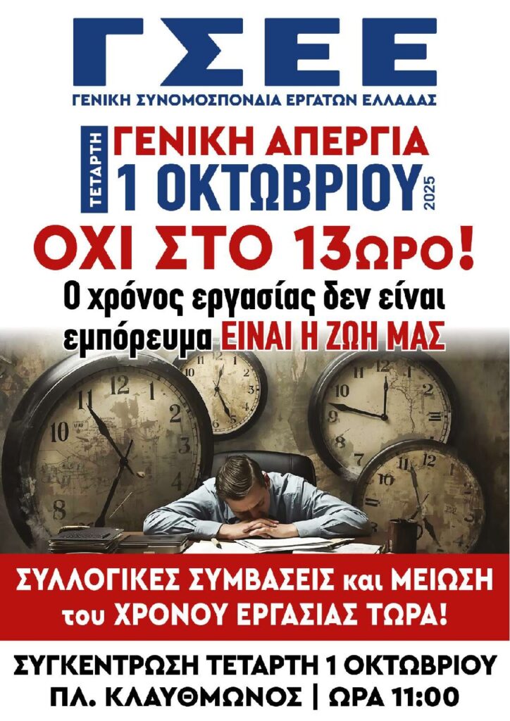 ΠΑΝΕΛΛΑΔΙΚΗ ΑΠΕΡΓΙΑ ΤΗΣ ΓΣΣΕ  1/10/2025