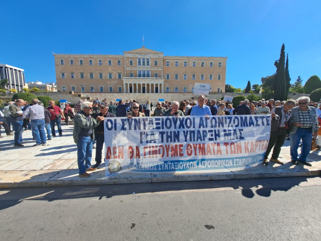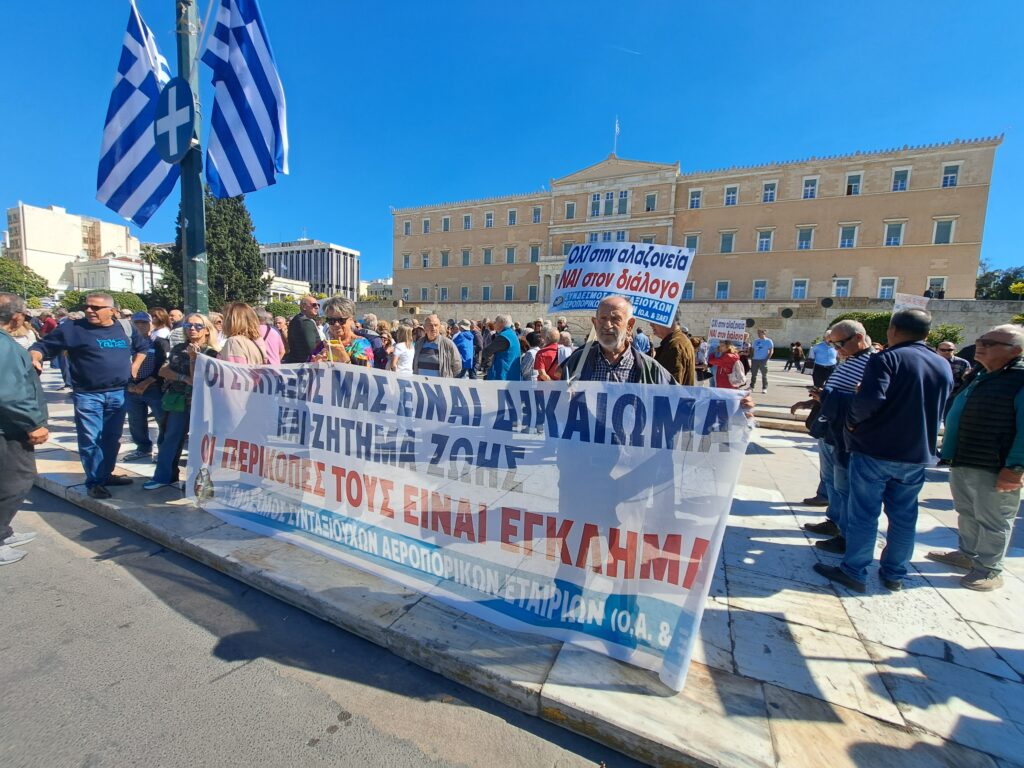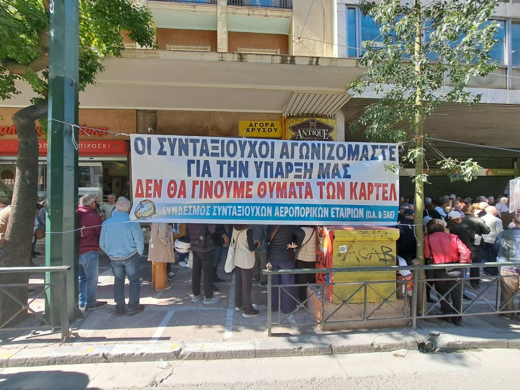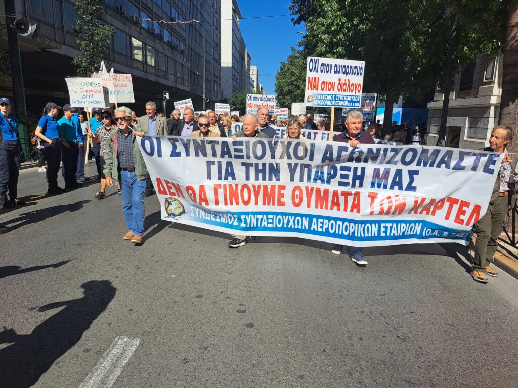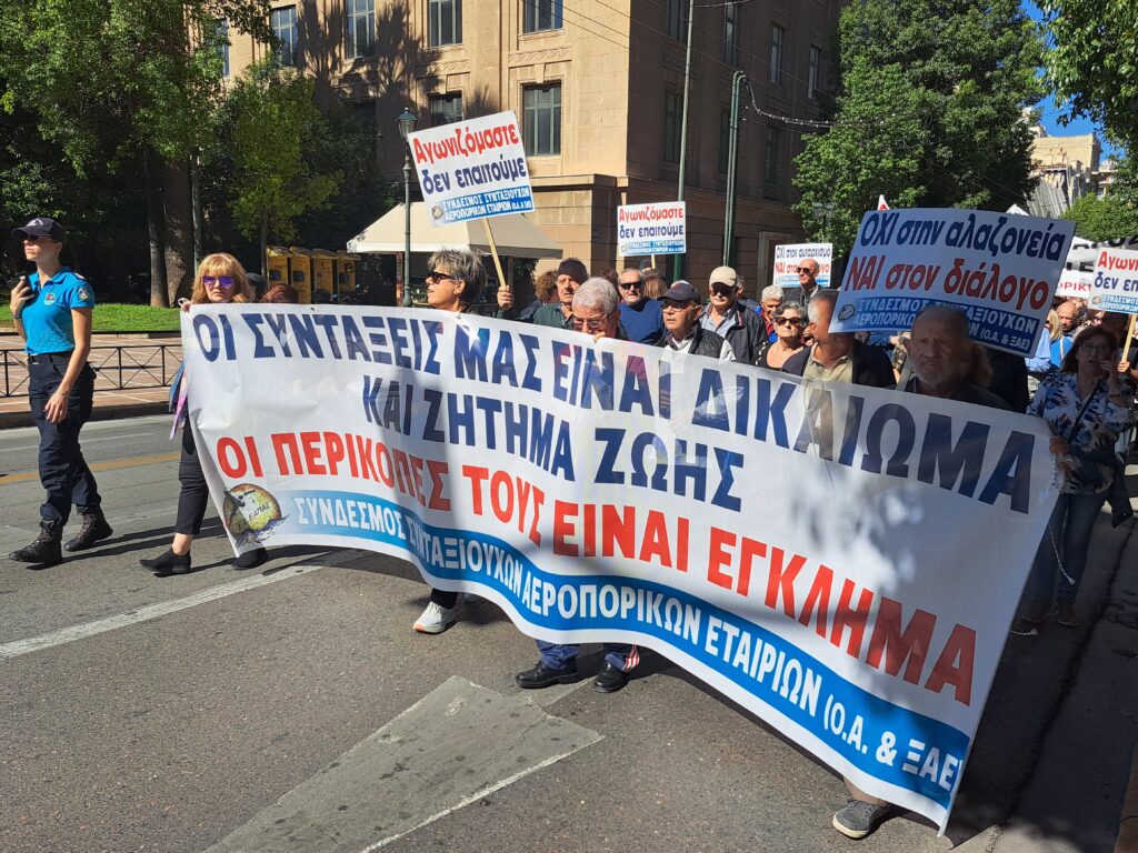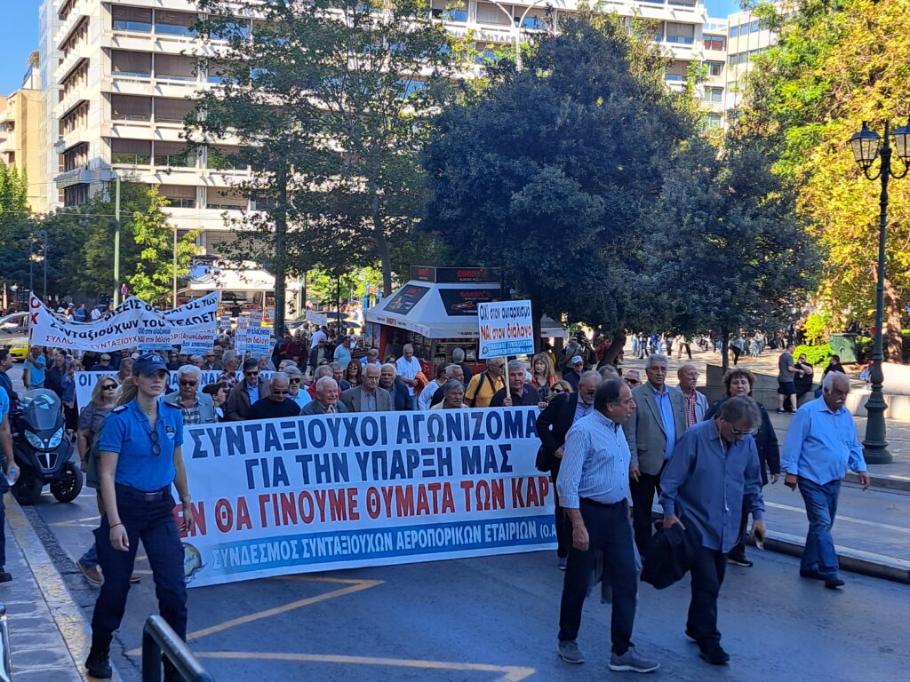 Στις 9/10/2025 πραγματοποιήθηκε η δυναμική κινητοποίηση-διαδήλωση διαμαρτυρίας που συναποφάσισαν ο Σύνδεσμος Συνταξιούχων Αεροπορικών Εταιριών (ΣΣ ΕΑΠΑΕ) και ο Σύλλογος Συνταξιούχων Εμπορικής Τράπεζας, έξω από Υπουργείο Εργασίας για να συναντήσουμε την υπουργό ώστε να θέσουμε τα θέματα που απασχολούν τους συλλόγους μας, για να δοθούν λύσεις.